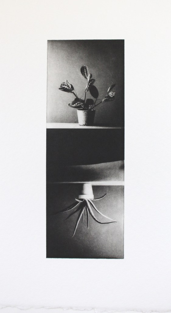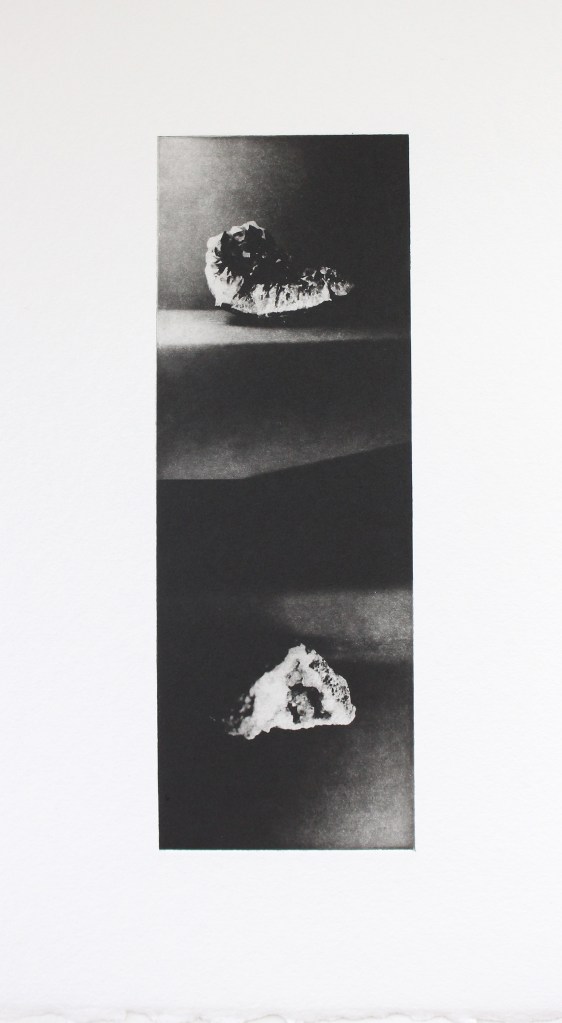 ‘From Another Place – Houseplants’, 2021, 41 x 22cm, Photopolymer gravure, Edition 35‘From Another Place – Crystals’, 2021, 41 x 22cm, Photopolymer gravure, Edition 35‘From Another Place – Abacus I’, 2021, 25.4 x 22cm, Photopolymer gravure, Edition 35‘From Another Place – Abacus II’, 2021, 25.4 x 22cm, Photopolymer gravure, Edition 35‘From Another Place – Magic Lamp’, 2021, 22.6 x 22cm, Photopolymer gravure, Edition 35‘From Another Place – Three Monkeys’, 2021, 22.6 x 22cm, Photopolymer gravure, Edition 35‘From Another Place – Two Pebbles’, 2021, 22.6 x 22cm, Photopolymer gravure, Edition 35‘Stonecast’, 2020, Wood, brass & stone, 19 x 43.5cm